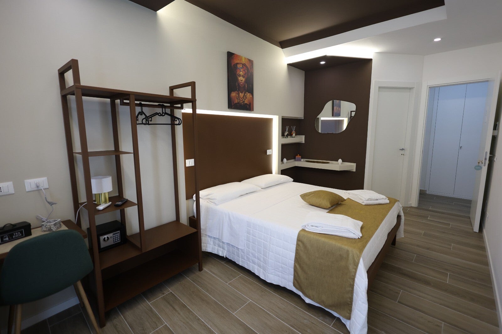 Tutte le nostre camere sono nuove ed eleganti, dotate di ogni comfort per garantire un soggiorno indimenticabile. Presso Aura Suite 46, il vostro benessere è la nostra priorità.